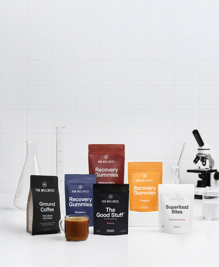 Build your daily routine with the For Wellness Bundle Box — everything you need to feel your best, from your first sip to your evening reset.